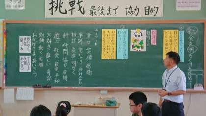 「社会を明るくするために」をテーマに校長先生が道徳の授業をしてくださいました。
