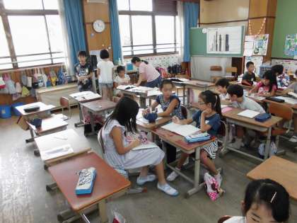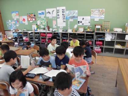 国語科『伝えよう,楽しい学校生活』の学習で,学校生活の楽しい行事や取組について発表会を行います。それぞれテーマごとのグループで,発表することについて話し合いました。