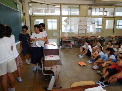 長期宿泊学習に向けて,リーダーからの提案でアイスブレイキングをしました。グループのみんなで仲を深めるために,ゲームをしました。どのグループも楽しそうに取り組んでいました。