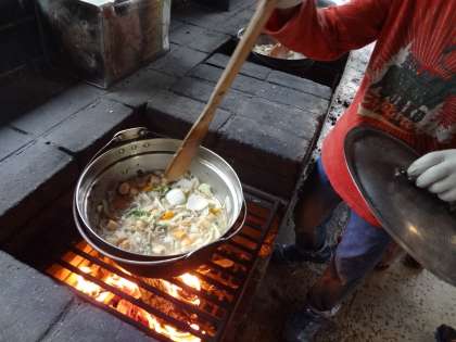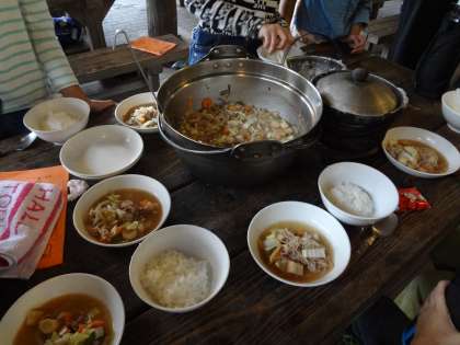 火おこし体験が終わった後,早速その火を使って野外炊事を行いました。それぞれが役割をこなし,すき焼き風煮が出来上がりました。とてもおいしかったです。ごはんは,少し柔らかくなったり強めのおこげができたりしましたが,また,今日の経験を明日のハヤシライスに活かしていきたいと思います。