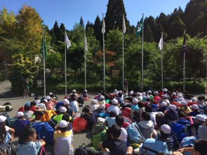 その後,退所式を行いました。たいへんお世話になった山の家の所員の皆さんに心を込めてお礼を言いました。この宿泊学習を通して学んだことを今後の学校生活でも活かしていきたいと思います。