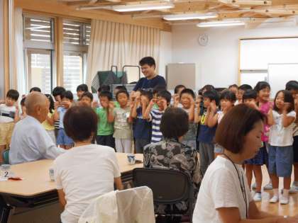 ダンスを踊ったり,歌を歌ったり,敬老の日のプレゼントを渡したりしました。歌では,アンコールをもらい,とても楽しい時間を過ごすことができました。