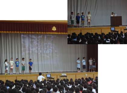 9月19日(火)にみなみタイムとみんなの日が行われました。今回のみなみタイムは,5年生が花背山の家長期宿泊学習で体験したことや学んだこと,感じたことなどを全校児童の前で発表しました。「感謝」という言葉が,何回も出てきました。