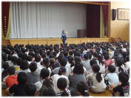 子どもたちも緊張した様子で,教室でじっと待機するのは10分程度でしたが,とても長く感じたようです。その後,体育館に全員集まり日ごろから気をつけることや緊急時に先生の言うことをしっかり聞くことなど,警察官の方から話していただきました。