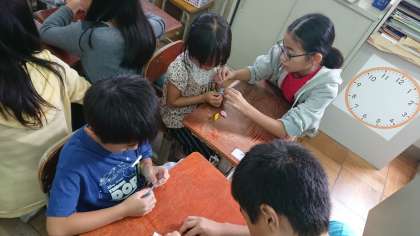 1日目は,広島の平和記念公園で世界の平和を願って「平和の集い」を行います。その際に捧げるつるを,1年生〜5年生にも折ってもらいました。