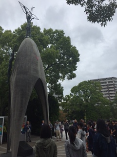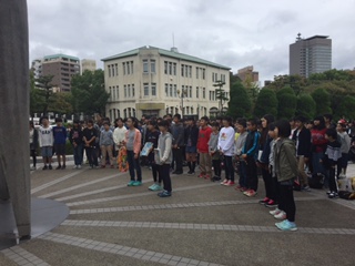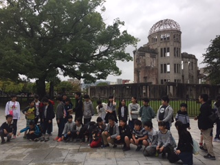 平和記念公園の「原爆の子の像」の前で,平和の集いが行われました。行く前から平和学習として,原爆のこと,戦争のこと,貞子さんと折り鶴のことなどを調べたり,全校児童に呼びかけて,折り鶴を折ってもらったりしました。今日,その折り鶴を誓いの言葉と一緒に捧げました。