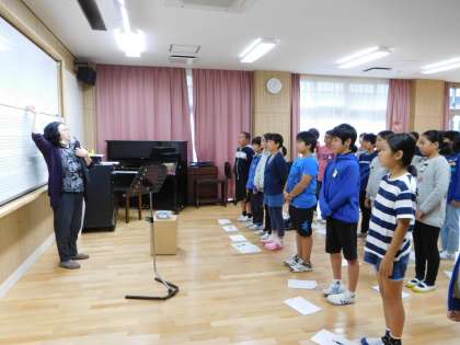学芸会に向けて合唱の練習もしています。発声方法を教えてもらい,おなかから声を出すことを意識して取り組んでいます。これから練習を重ねて美声を響かせてほしいと思います。