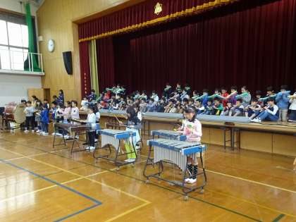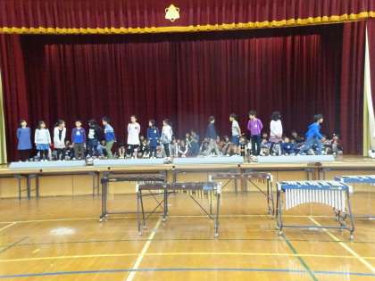 11月9日5校時に『マジカルアドベンチャー』の練習をしました。劇の後半に,木琴,鉄琴やシンバル,すずなどの楽器を使って『ミッキーマウスマーチ』の合奏をしました。