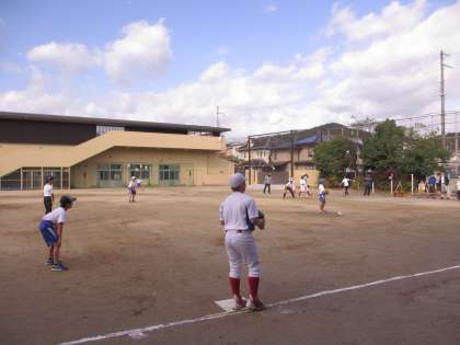 11月11日(土)に北白川小学校のソフトボール部をお招きして,練習試合を行いました。昨夜からの雨でグランドには水たまりがありましたが,部員のみんなで整備をしました。スポンジや雑巾で水を吸い取ったり,トンボを使って整地をしたりしました。おかげでグラウンドの状態も回復し,無事に試合開始を迎えることができました。試合の中では,それぞれが力いっぱいプレーし,感じ取ったり,学んだりすることが多かったと思います。秋晴れの空の下,爽やかで楽しい時間を過ごすことができました。今日の経験を今後にいかしていってほしいと思います。