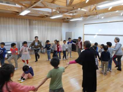 学芸会で歌う「京わらべ」を紹介し,歌ったり遊んだりしました。