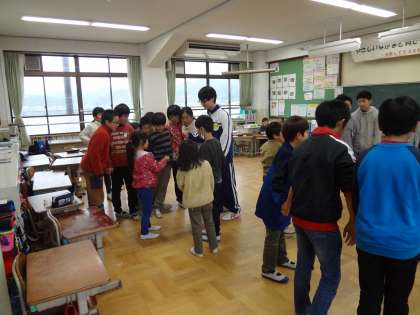 洛北中学校の2年生が岩倉南小学校へチャレンジ体験に来てくれました。校舎のそうじやプリントの印刷のお手伝いをしてくれたり,子どもたちと一緒に遊んだり,いろんな活動をしています。