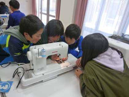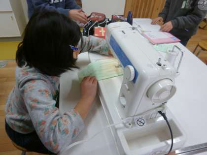 ミシンを使った学習をすすめています。まだまだ上糸・下糸の準備をするのに時間がかかる子どもたちでしたが学習を重ねるごとにスムーズにできるようになってきました。練習布を使ってまっすぐ縫う練習をしています。