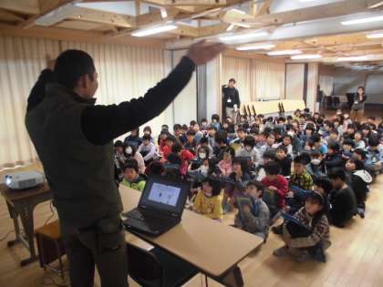 3年生は,みなみ学習で,宝ヶ池公園の自然を調べます。森林インストラクター(森のはかせ)の吉野さんにお越しいただいて,自然の木の生え方や,生き物と生き物とのかかわりなどを興味深く話していただきました。子どもたちからは,「シカは,季節によって食べるものが変わっていることに驚いた。」など,感想を発表しました。来週に,宝ヶ池に行って観察するのを楽しみにしています。