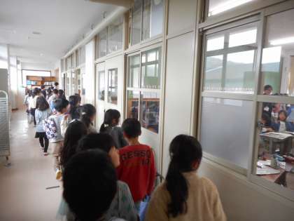 授業の迷惑にならないように,静かに歩いて,学校中の教室を見学しました。