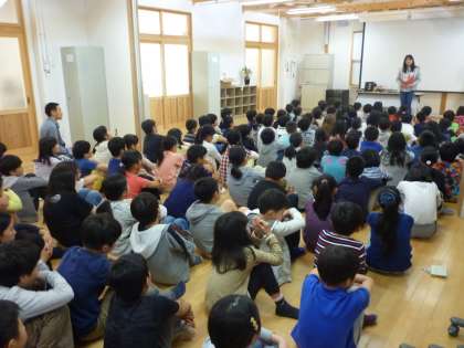 いよいよ「花背山の家」に向けての活動が始まりました。山の家の施設の写真を見たり,係の仕事内容についての話を聞いたりしました。子どもたちは,大きなお風呂や食事(バイキング)の写真を見て,大興奮でした。