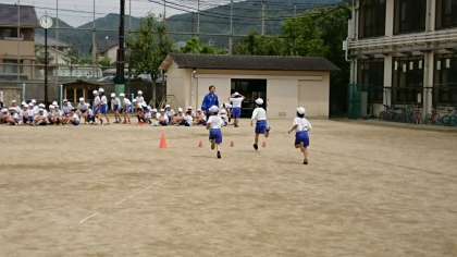 運動会の練習が始まりました。5年生の出場種目は,アラカルトリレーです。いろいろな種類のリレーを組み合わせたものです。練習からどの子も全力で頑張っています。