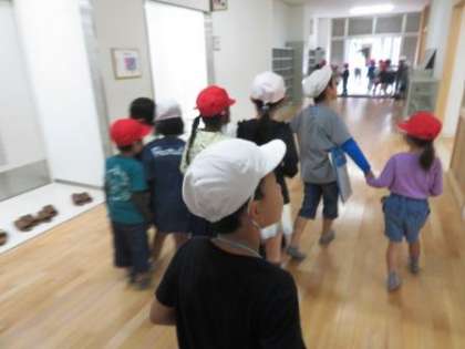 1年生はお兄さん・お姉さんと楽しく学校探検し,いろいろな教室について知ることができました。