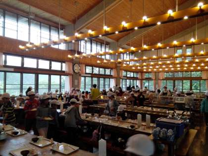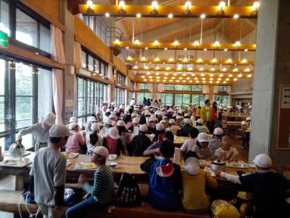 朝のつどいを終えると,楽しみにしていた朝食です。子どもたちは朝からもりもり食べていました。今日一日,元気に過ごせることと思います。