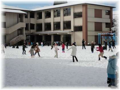 昨日からの降雪で,運動場には20センチほどの積雪がありました。朝から児童たちは,雪遊びに夢中です。「子どもは風の子」とはよく言ったものですね。しかし,一方では,インフルエンザやかぜ等で欠席する児童が多くなり,1年生2クラスが学級閉鎖となりました。(17日付でプリントを配布しています。)体調管理には,十分注意してください。また,登下校の際には,凍結などで滑ることがないよう,安全にも気をつけてください。