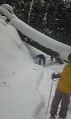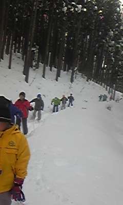 午前中にグランドで基本的な歩くスキーを練習した子どもたち。昼食後は,本日のめあてである「工夫」の中心的な活動であるゴシ谷での歩くスキーに挑戦しています。午前中に練習したことを生かしながら,前の人とぶつからないように気をつけて,楽しく滑っています。
