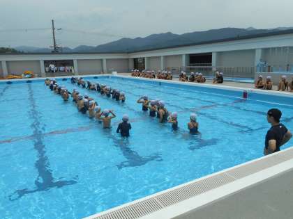 水慣れから,伏し浮き,蹴伸びなど距離を長く泳ぐための学習をしました。