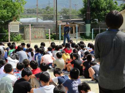 岩倉消防署の方や地域の自主防災の方々が来られ,訓練の様子を公表していただき,岩倉南の子どもたちは避難が上手だったとほめていただきました。