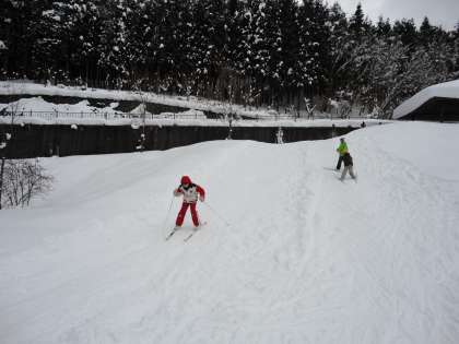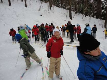 小学校の宿泊学習では,最長の4日目を迎えました。夜は,ぐっすりと眠れているようです。午前中の活動は,歩くスキー(ゴシ谷コース)です。2回目になるので,みんな前よりは,おもいきってすべっていたようです。ゴシ谷コースをすべり終えた子どもたちは,山の家グランドの急傾斜をすべり降りることに挑戦していました。