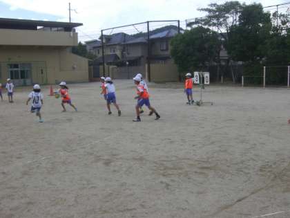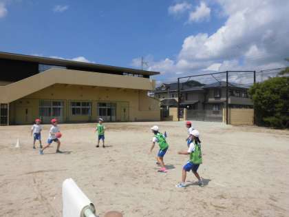 体育では,エンドボールが始まりました。初めての人が多くて,ルールを覚えるところからでしたが,早速,作戦を考えるチームも。