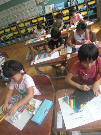 真っ白だった画用紙を一生懸命真っ黒に変える子どもたち。