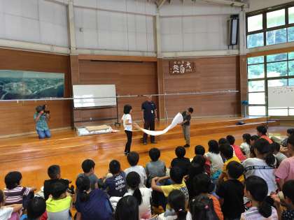 入所式の後は,オリエンテーションです。特に,寝具の準備や片付けの仕方を教えていただきました。友達と協力して行うことが大切です。