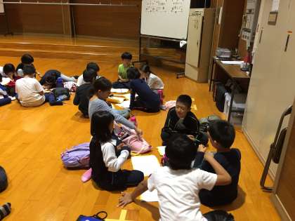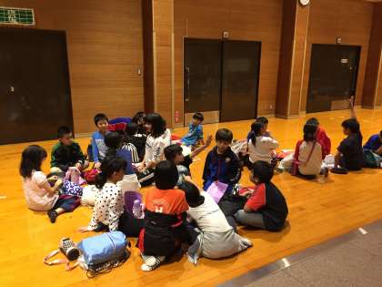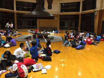 グループで1日の活動を振り返りました。到着の遅れを野外炊事が終わる頃には取り戻しました。時間を意識して行動することができ,グループのまとまりもできてきました。明日からの活動が楽しみです。