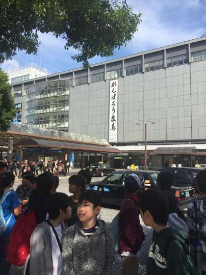 広島駅に到着しました。こちらは快晴です。これから原爆ドームに向かいます。