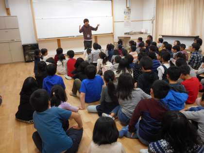 学年集会では,各クラスの担任の自己紹介や,転入生の紹介,新しく学習することについてなど話しをしました。