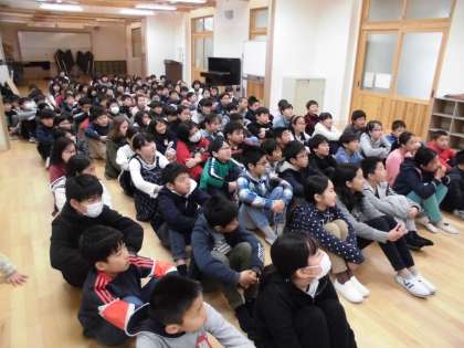 学年集会では,6年生として,みんなで頑張っていこうという話をしました。