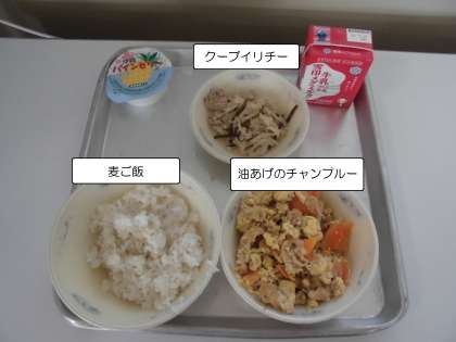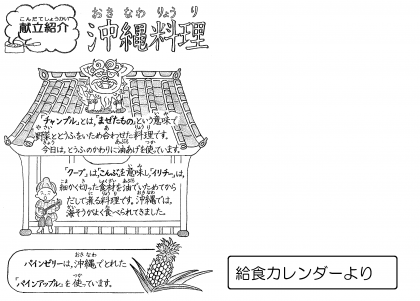 今日は沖縄の郷土料理であるチャンプルーやクーブイリチーが登場しました。