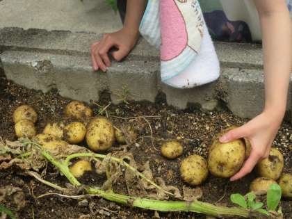 生活単元の学習で育てた,ジャガイモとピーマンを収穫しました。