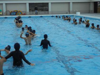 水泳学習が始まりました。子どもたちはもぐったり,うかんだりし,楽しく水泳学習を始めることができました。まだまだ始まったばかり,これから自分の目標に向かって,しっかり泳げるように練習していきたいと思います。