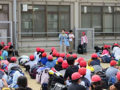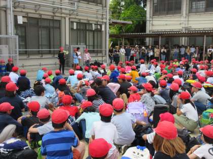お天気にも恵まれ運動場で出発式を行うことができました。