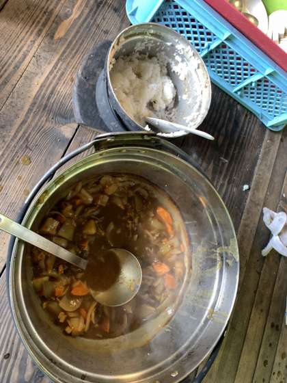 昨日のすき焼き風煮に続いて,野外炊事も2回目ということもあり