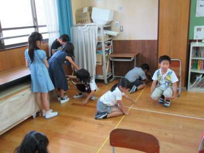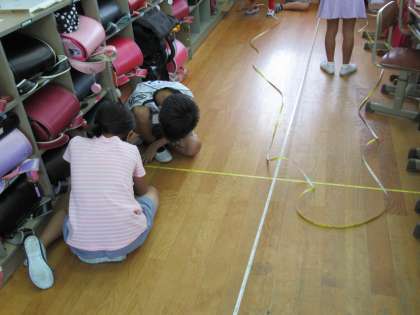 算数科の「時間と長さ」の学習でメジャーを使って教室の縦と横の長さをはかりました。子どもたちは「おもっていたより長い」や「○mってこれくらいなんだ」と実際にはかって長さの感覚をつかんでいました。これからもその感覚を大切にしてほしいと思います。