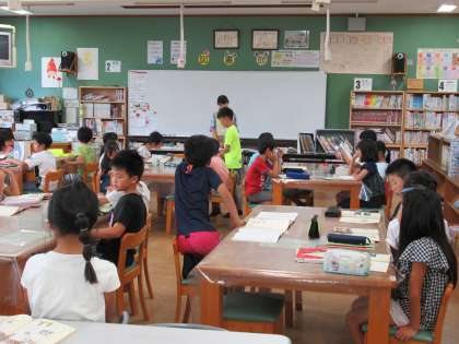 国語科の「本は友だち」の学習で,図書館のくふうを知り,本を使って調べる方法を学習しました。子どもたちはさくいんから調べたいものをみつけ,百科事典で調べたいことを調べていました。これからもどんどんつかっていってほしいと思います。
