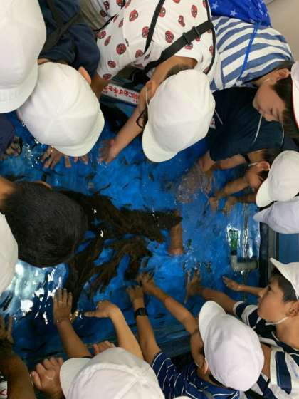 海女さんの餌やり実演がありました。ドクターフィッシュが