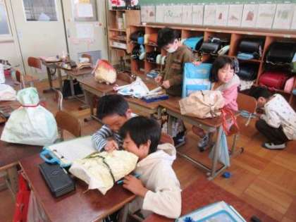 図画工作科で「くしゃくしゃぎゅっ」を鑑賞しました。