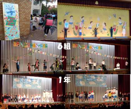 6年生は,最後の学芸会でした。平和学習を進める中で,自分たちにできることは何かを考え,まずは身近にいる友達を大切にすることを伝えるため,「いじめ」をテーマに「Just one life〜あなたは気づいていますか〜」「It’s a small world」という創作劇を行いました。迫真の演技で「いじめはいけない」「自分のことだけ考えていないか」「世界は一つ」というメッセージを会場の人々に届けました。また6年生は,会場準備,幕間のゲーム,おわりの言葉で活躍してくれました。そして,5年生は,後片づけで,高学年としての責任を果たしました。
