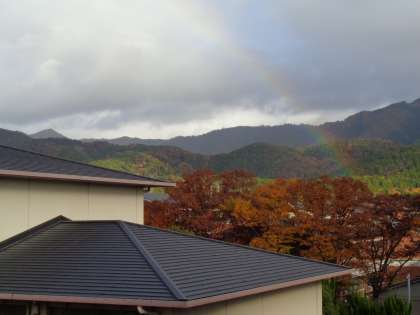 先週の水曜日(20日)のことです。きれいな虹がかかっていました。心が和みます。