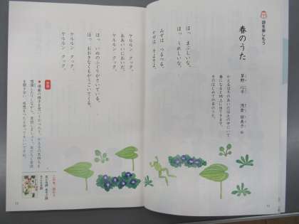 かえるは冬のあいだは土の中にいて春になると地上に出てきます。そのはじめての日のうたです。みなさんも場面の様子を思い浮かべたり,かえるの気持ちを想像したりしながら,音読をして春を感じてみてください!