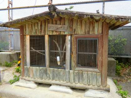 うんどうじょうの はしに ある しいくごやです。なかに うさぎが います。