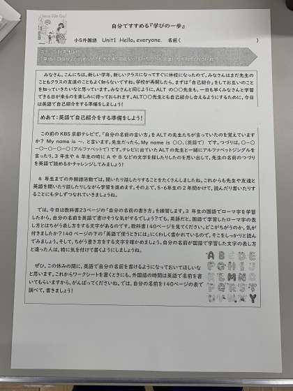 その中には,外国語科のプリントがあります。