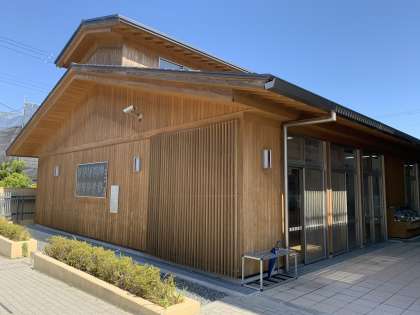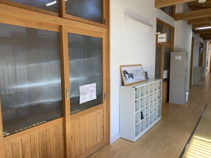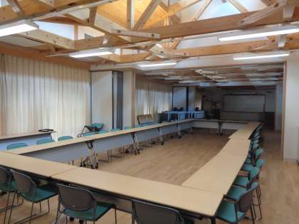きょうは,たもくてきしつのしょうかいです。木のたてものです。