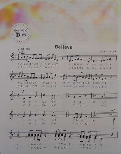 作者の杉本竜一さんは,「信じることの大切さ」をこの歌にたくしているとおっしゃっています。「やさしさと思いやり」ですね!